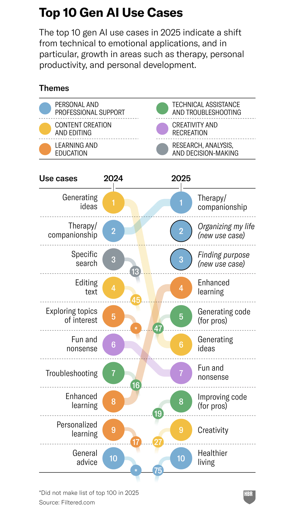 - Personal vs. professional use. By 2025, 73% of ChatGPT interactions were non-work related, up from 53% in 2024. This shows how AI is penetrating everyday life: planning meals, giving travel advice, or answering health questions.